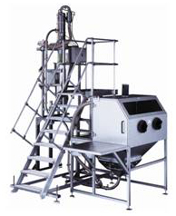 針對堆積密度比較小,易產生粉塵飛揚、對人體和環境有毒有害的粉體,采用手套箱卸料系統是較合適選擇。并且可直接通過密閉式開袋站底部的輸送管道與輸送設備進行連接,將物料有效輸出到指定位置。
